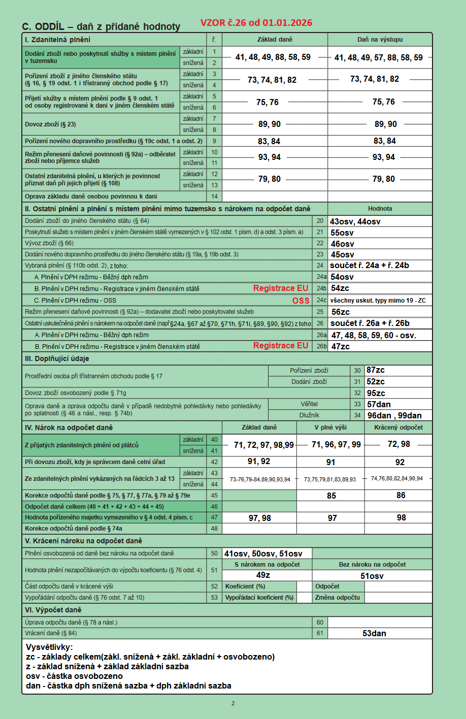 | 43 | Dodání zboží do jiného členského státu | 01.05.2004 | 31.12.2099 | uskutečněné |