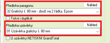 V případě Maloobchodu se předlohy výstupních sestav volí v Nastavení / Maloobchod / Tiskárny.